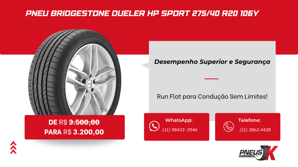 Desempenho e Segurança: Pneu Bridgestone Dueler HP Sport 275/40 R20 106Y Run Flat – A Escolha Perfeita para Seu Veículo!