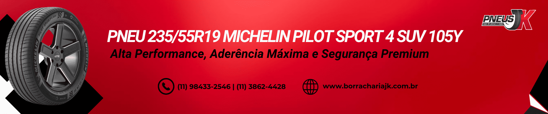 Se você precisa de pneu Michelin Pilot Sport 4 SUV 235/55R19 105Y, conte com a Pneus JK para qualidade, confiança e atendimento imediato.