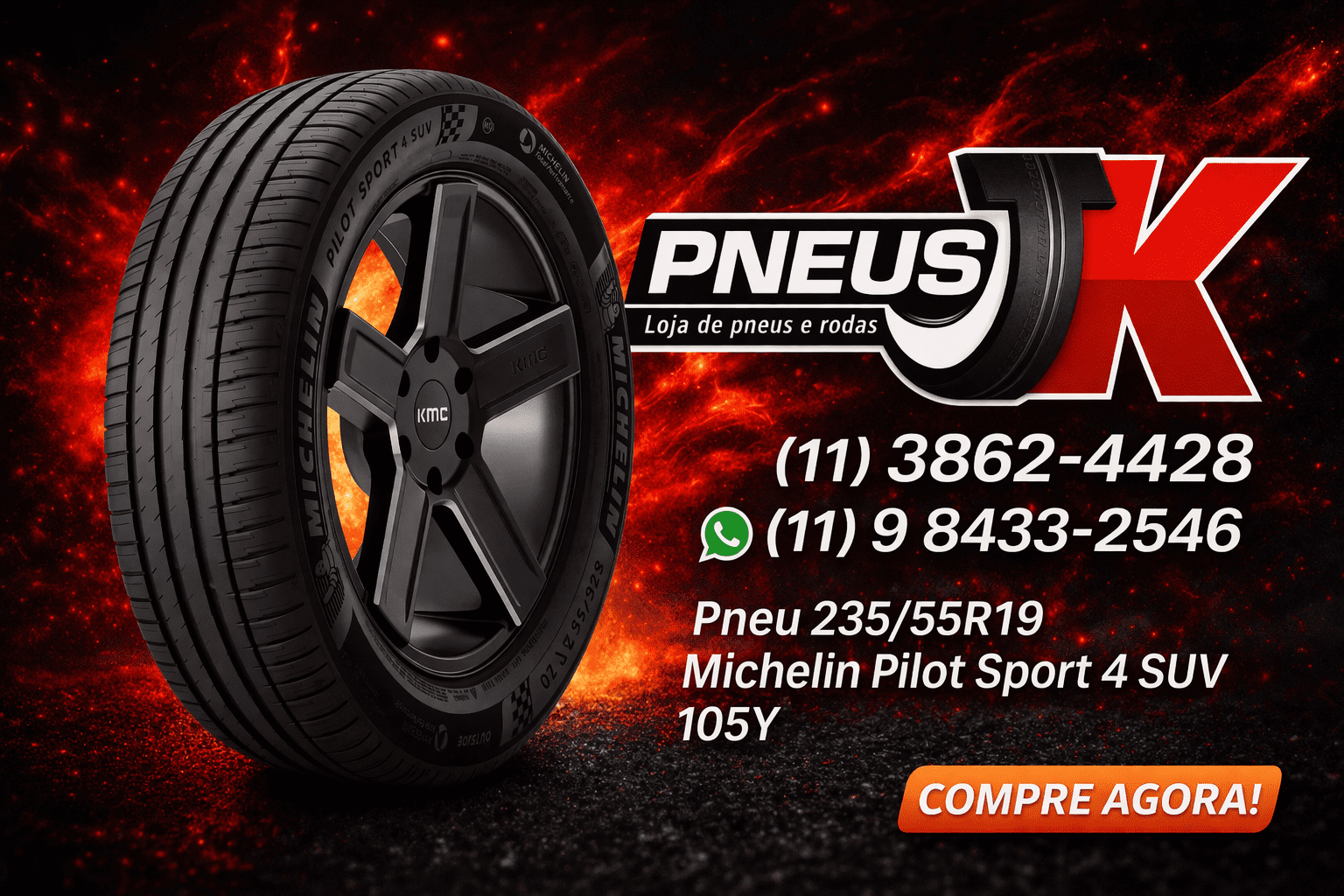 Compre agora o pneu 235/55R19 Michelin Pilot Sport 4 SUV 105Y na Borracharia JK e garanta alta performance, segurança e conforto para seu SUV.